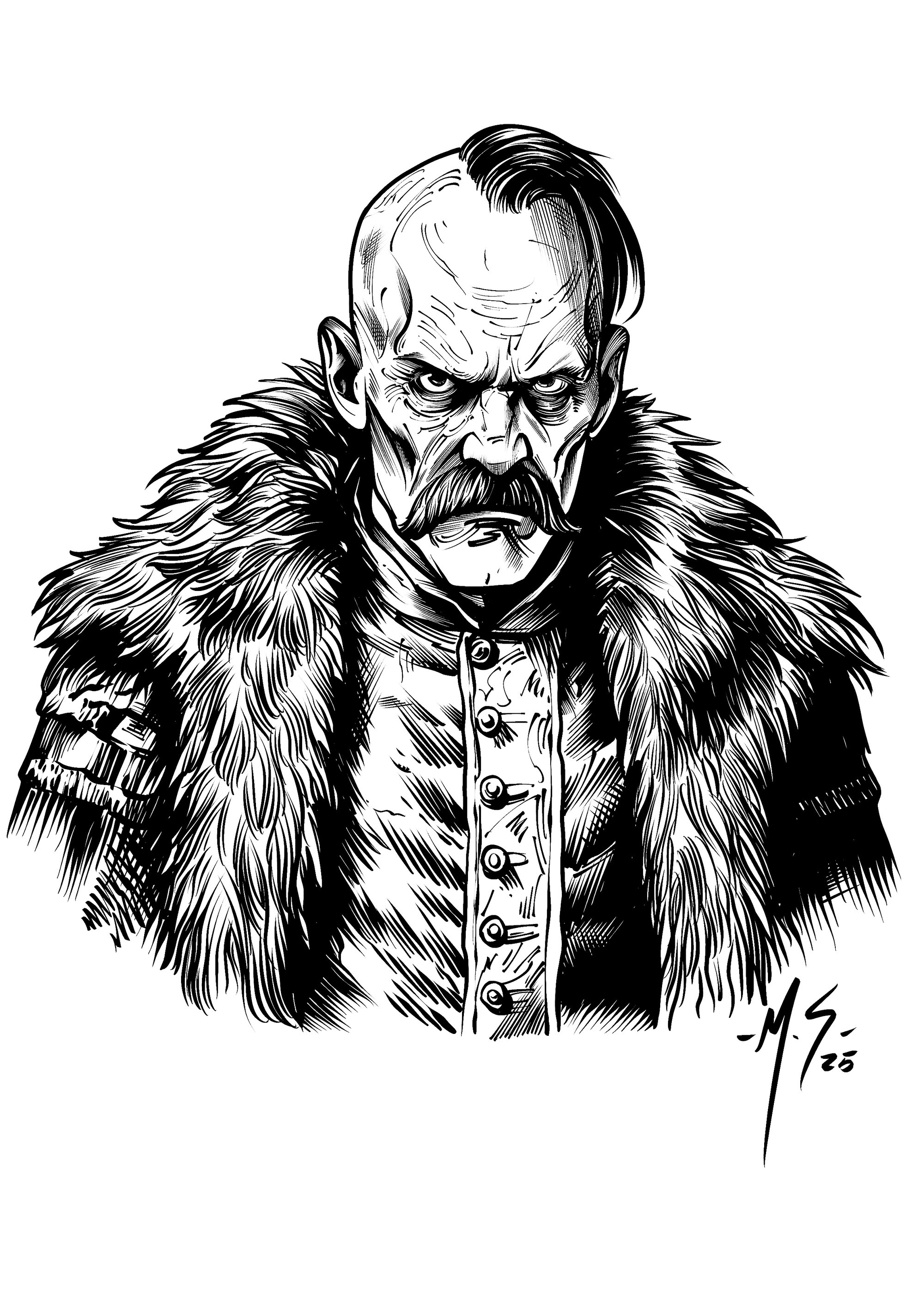 Striking black-and-white ink illustration of Count Orlok from the 2024 film Nosferatu. Printed on premium stock and available in: